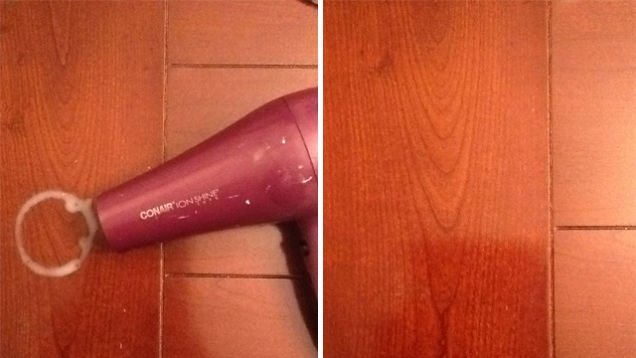 Đồ uống , vết bẩn dính trên sàn hay nội thất gỗ, bạn sử dụng máy sấy làm nóng rồi dùng khăn lau thật dễ dàng