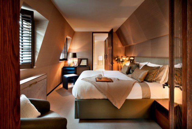 Căn phòng nơi áp mái khá chật chột nhưng với bố cục hợp lý nên phòng ngủ tiện nghi khi có góc đặt bàn làm việc tại đó